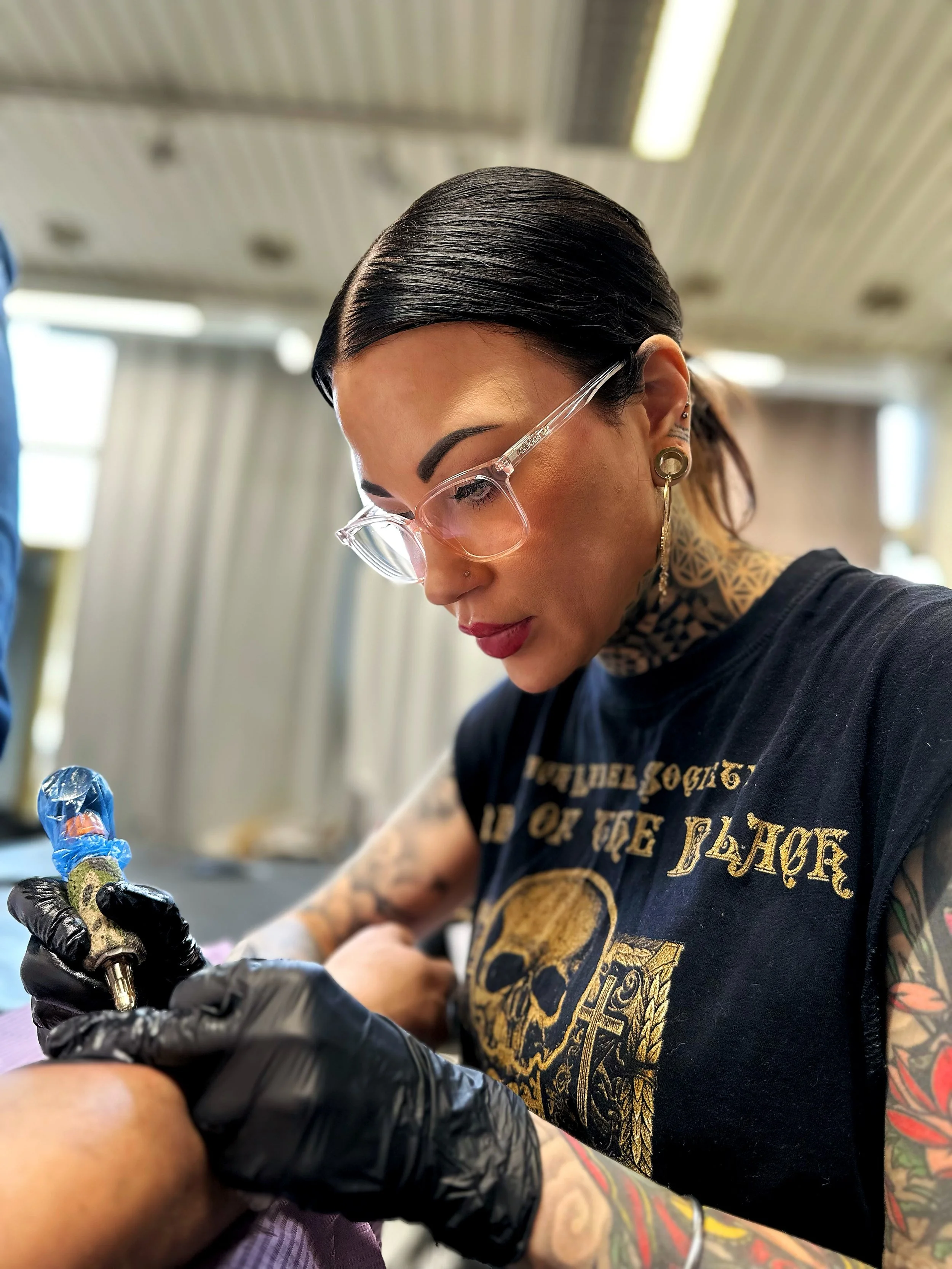 Hei! Olen Ina ja rakastan yksityiskohtia ja eläimiä. Olen työskennellyt tatuoijana Suomessa, Barcelonassa ja Argentiinassa. Minulla on ollut ilo työskennellä monenlaisten ihmisten ja toiveiden parissa. Tyylillisesti sydäntäni lähimpänä ovat mustaharmaat kuvat, realistiset potretit sekä kaikenkarvaiset ja karvattomat eläinhahmot. Teen kaikenkokoisia kuvia pienistä suuriin sekä yksinkertaisista vaativiin. Käyttämäni musteet ja materiaalit ovat vegaanisia.